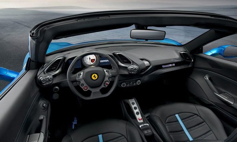 细节:本车型硬顶材质为铝合金,开合时间约为14秒,机械部分相较488 GTB增重50公斤,总重达到1525公斤。