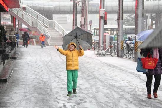 赏雪:南方城市迎降雪 游人热情不减