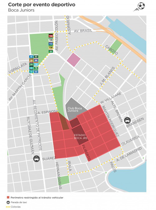 10月22日星期二下午4点开始,受到解放者杯半决赛影响,博卡主场La Bombonera附近将进行交通限行。