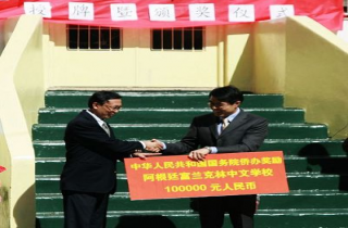 驻阿根廷使馆临时代办朱京阳出席“富兰克林中文学校荣膺国务院侨办海外华文教育示范学校授牌暨颁奖仪式”。全校师生约400人参加仪式。朱代办与毛亦丰校长共同为国务院侨办授予该校的“海外华文示范学校”牌匾揭牌,并向毛校长转交国务院侨办现金奖励10万元人民币。朱充分肯定该校多年来致力于推广华文教育取得的显著成绩并鼓励孩子们学好中文。