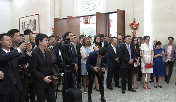 招待会上,播放了世界各地庆祝中国新年的纪录片,展现了浓浓中国民俗喜庆气氛。