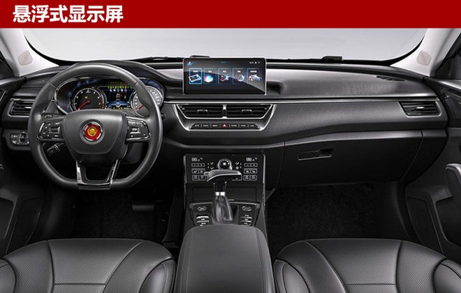 红旗H5内饰采用环抱式设计,中央由镀铬饰条贯穿,层次分明布局清晰;上方配备大尺寸悬浮式显示屏,并辅以饰条点缀,突显精细。三辐式平底方向盘造型运动,前方双圆盘仪表之间配有行车电脑显示屏。