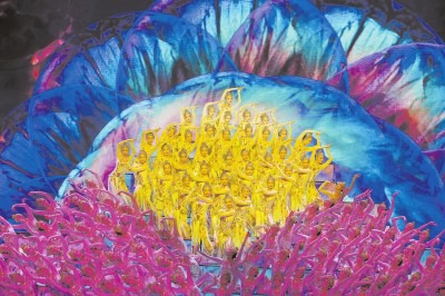 壮观天地,抒发新时代的新情怀。2018年春晚的大型歌舞,舞蹈语言与音乐语言十分丰富,接地气,暖人心,场面恢宏。特别是 《丝路绽放》那静懿、祥和、对发展的憧憬,那千年丝路未被黄沙掩盖的坚强,那欣逢盛世对未来的展望,都得到了到位的展现。《波涛之上》,在巨浪连天、激雷闪电、乌云翻卷中,颇有力度地表达了人的力量与刚勇。表现特种兵的群舞 《沙场砺兵》,造型险峻、排山倒海、动作出其不意、刚健勇武,展示了我人民军队气贯长虹、无坚不摧。儿童卡通舞让小小的孩童怀抱小狗狗欢舞,童趣盎然、憨态可掬,也意喻着为狗年祈福。在此之中让人感动的是在亿万人民欢乐祥和之时,大屏幕上展现出风雪中边防哨所与军犬为伴的祖国卫士。