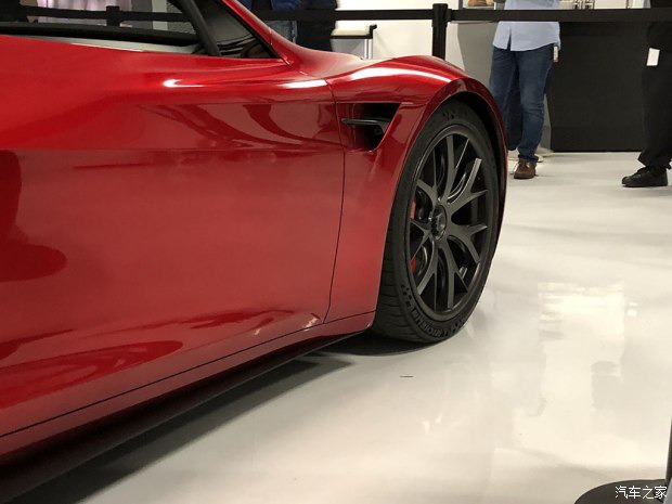 新车在外观上,既保留了其家族式传承的同时,又在细节上进行了创新,熏黑背景的拉伸状三角形大灯自然的融合到整个前脸造型之中,前包围两侧及前储物箱盖的近气口设计,提升了整车的霸气感,给人一种比较强的攻击性。车尾的造型十分厚实,给人一种比较强的肌肉感,搭配上全新溜背式尾部造型,让车辆在豪放中多了一份优雅。在侧面,新一代ROADSTER并没看到传统意义上的后视镜(目前美国并不允许),但在其前翼子板通风口处出现了一个摄像头。