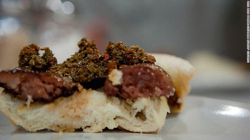 在阿根廷这通常作为烧烤的主菜,但是由于适手的造型,它成了旅行者途中的理想零食。厚涂一层奇米丘里辣酱,如此特色的美味岂能错过!