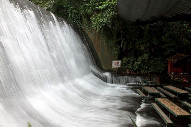 餐馆中的桌子、凳子等均放在瀑布流经处,人们在用餐的过程中会一直感受到潺潺的流水从脚下经过,一种贴近自然的感觉破浪而来。一面欣赏飞流直下的瀑布,一面品尝风味独特的菲律宾美食,不时还可以在瀑布下嬉戏,膳后亦可乘坐水牛车参观整个种植园。