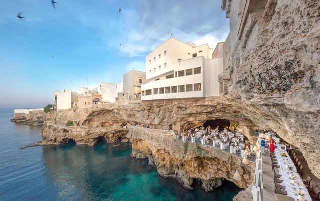 你可以在这里吃到意大利的各色美食以及全球精选食物,如意大利面、菲亚诺干白、泰式鱿鱼、蒜爆大虾等。饭后可以去波利尼亚诺(Polignano)散步,欣赏这座希腊风情小镇在悬崖边的白色建筑和天然洞穴。