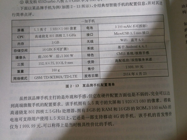 这款手机就是来自一加的一加一代手机。记得是当时刘作虎离开OPPO创立一加品牌的第一款手机。一加一代与OPPO的旗舰手机Find7除去外壳材质不同,其它基本一致。一加的品牌理念是不将就,所以这款不将就的手机当时也是轰动一时,成为了经典。但是上了教材却是非常意外。