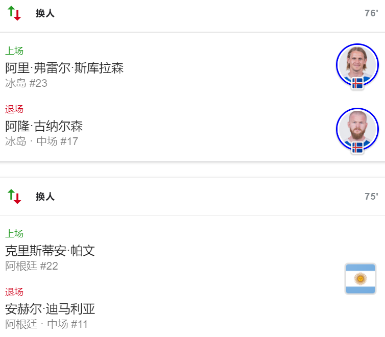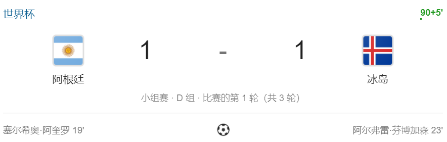 [世界杯专题]阿根廷1:1冰岛(赛程回顾) julie • 2018-06-16 00:56• 收藏本文 阿根廷时间6月16日上午 10:00 开球 中场休息 阿根廷1:1冰岛 下半场 45‘ 全场技术统计 赛前统计 转载本网稿件,原则上需要书面授权,不得篡改稿件主题。本网随时有权要求第三方停止侵权行为。 本网所载内容或图片,若涉及侵权,请联系删除。 16 ___________ 2018/06 [世界杯专题]阿根廷1:1冰岛(赛程回顾) 阿根廷时间6月16日上午 10:00 开球中场休息 阿根廷1:1冰岛下半场 45‘全场技术统计赛前统计 [ 微信长按识别二维码或扫码查看分享内容 ]