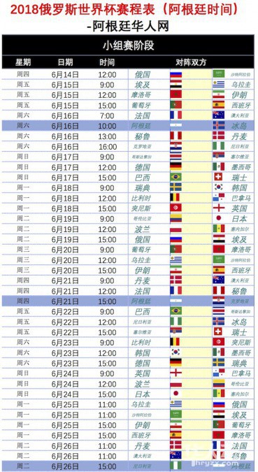 收藏!2018俄罗斯世界杯完整赛程表(阿根廷当地时间