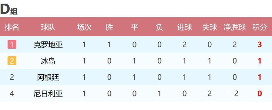 2,对手再赢球就出线。目前,克罗地亚积3分,排在小组榜首,如果能够击败阿根廷的话,他们的积分将达到6分,不管其余比赛结果如何,至少能够拿到一个出线名额。当然,对他们来说也有不利的地方,前锋卡利尼奇被开除国家队,多多少少会影响到其他球员的心态,还好的是,卡利尼奇不是主力。