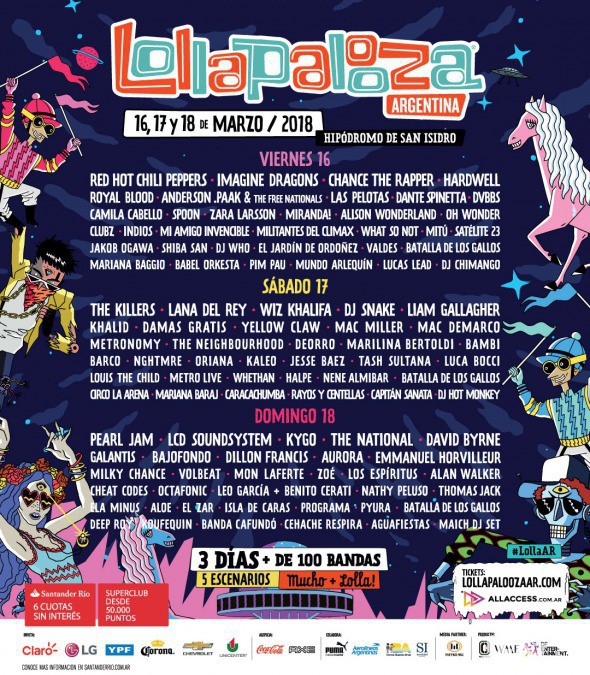 根据LOLLAPALOOZA官方提供的消息明年的音乐会日期定在3月29,30和31号,与往年一样表演地点在HIPÓDROMO DE SAN ISIDRO。受邀歌星榜单还未发布,可参考往年的受邀明星。