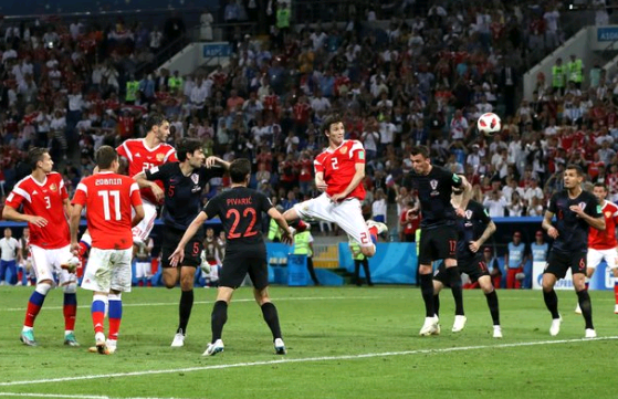 好在作为东欧足球代表的克罗地亚“奇们”,毕竟见过世面,缓过神之后,仅用了8分钟便由克拉马里奇头球扳平比分。此后,比赛绝大部分时间是在俄罗斯人的半场度过的,莫德里奇的指挥调度给“奇们”制造出不少机会,尤其佩里西奇一记巧射弹柱而出,令俄罗斯门神阿金费耶夫长出一口大气。可惜机会无法转化为得分,比赛再次被拖入到加时赛。好在纪录终归是会被改写的,正当大家以为加时赛不过是点球之前的铺垫时,整场表现不俗的后卫维达,在第101分钟时贡献了一粒头球,不仅帮助克罗地亚人成功逆转,也成为本届杯赛到目前为止的首粒加时赛入球。也正当现场俄罗斯人情绪低落时,同样在整场比赛中表现极佳的后卫费尔南德斯,在第115分钟时利用前场任意球头槌破门,为东道主扳平比分。