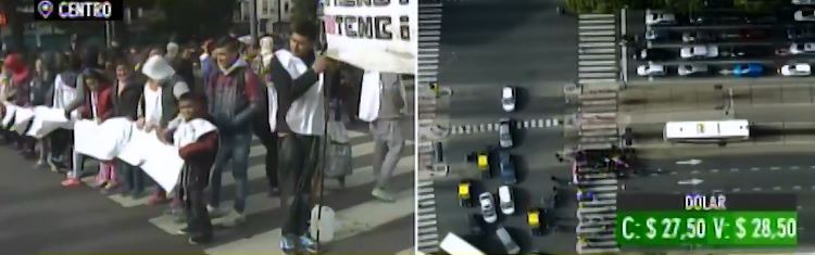 群众们集中在社会发展部对面等待同时还截断了la avenida 9 de Julio y Moreno街道的正常交通,位于方尖碑附近。