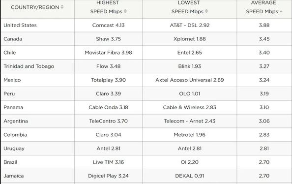 今年六月份,Telecentro公司重新回到了排名第一的位置,网络均速维持在3,70Mbps/每秒3,70兆比特(数据传输速率反映了终端设备之间的信息处理能力,它是一段时间的平均值,数值越大,说明速度越快),Cablevision - Fibertel则以3,43Mbps/每秒3,70兆比特的均速排名第二。