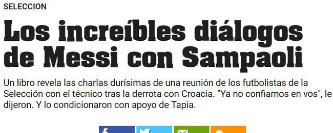 塞诺西亚因是阿根廷TYC体育电视台以及《奥莱报》的评论员,他刚刚出版了一本名为《世界杯是历史》的书,其中一个章节披露了阿根廷国家队0比3输给克罗地亚后,球员与教练之间的紧张关系。
