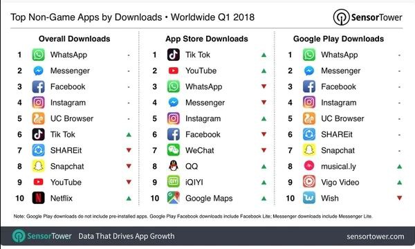 全球下载量最大的移动端app是什么?不是Whatsapp,不是YouTube,也不是Instagram。在2018第一季度全球下载量最大的移动端app是抖音/Tik Tok短视频。