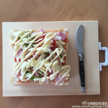吐司披萨做法🍕:吐司番茄酱披萨芝士(queso)西红柿青椒洋葱丝培根(jamon)披萨芝士(queso)沙拉酱(mayonesa)烤到披萨融化黑胡椒...
