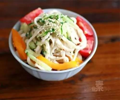 温馨小贴士:拌面所用的面条切不可煮过火。从锅中捞出后可以过凉水或是沥干水分,之后再和酱料混合均匀。
