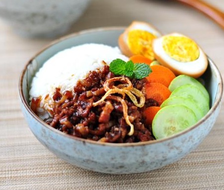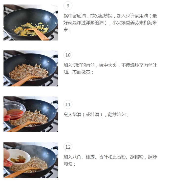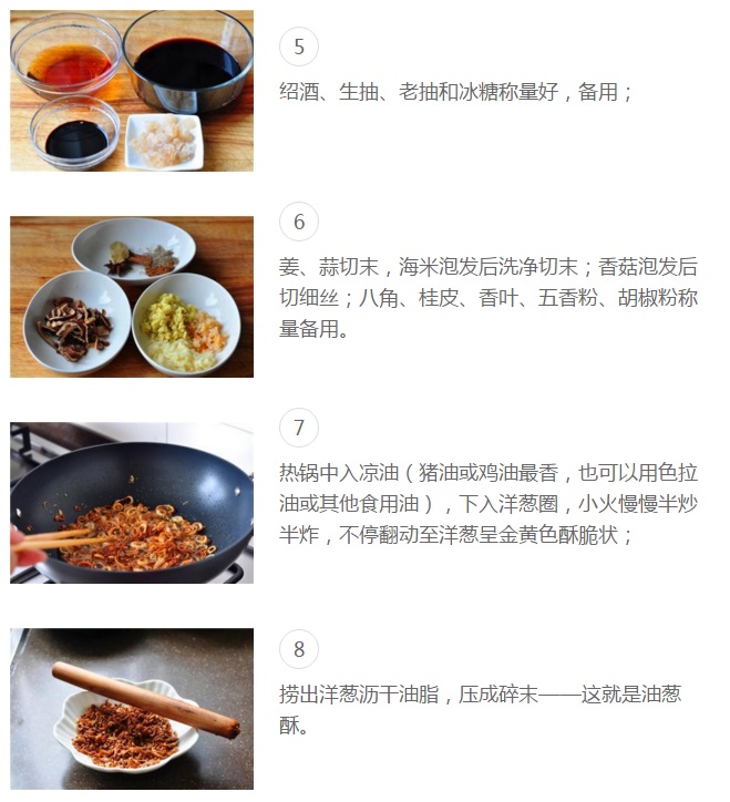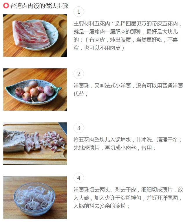 “地道、正宗、喷香的台湾卤肉饭,有三样调味料是必不可少的——香菇、海米、油葱酥!油葱酥是大家都会用到的,香菇、海米在有些配方中却没有;没有,倒也没关系,做出来也挺好吃,只是总觉得缺了点儿什么,尤其缺少“馆子”里那种浓香、复合、有层次的味道;加点儿香菇、放几粒海米,配合油葱酥的香味,正宗、地道的味道豁然而出!如果做的次数多,再有点儿老卤汁,绝对赶超任何一家台式餐馆了!浓香醇厚的卤汁,包裹着炖至酥烂、入口即化的上好五花肉,浇在香糯弹牙、光洁油亮的米饭上,还未尝味,口水已经“流了一地”——”