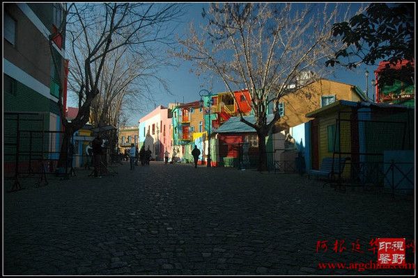 布宜诺斯艾利斯的博卡区以彩色建筑而闻名,尤其是沿卡米尼托大街。这些五颜六色的房子是有起源的,19世纪末,大批意大利、西班牙的贫苦民众为谋生计来到 这里,用铁皮搭建成一座座简陋房屋存身。那些贫穷的工人们却没有很多钱,当给房子上油漆的时候,他们只有用那些给轮船上色剩下来的油漆。每次拿一点,每个 人拿的都不一样,结果等很多房子建起来以后,大家才发现这个区已经变的五颜六色了。不过即使是这样,也不能遮掩博卡区的贫穷与混乱。简易铁皮屋渐渐地被普 通的砖石结构建筑所替代,但人们仍按过去的习惯,用鲜艳夺目的油漆,把崭新的楼房刷成绚丽的颜色。而这恰恰成就了博卡最精彩的吸引力。