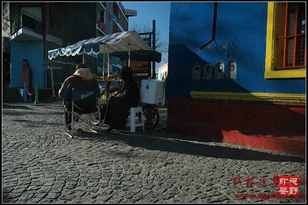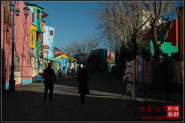 这个明丽、俏皮而招摇的地区中满是由不同纯色块覆盖的建筑,大大小小,犹如巨大的积木堆砌而成,连路灯都被漆成糖果色。而且这里的建筑大多采用撞色,鲜嫩 的柠檬黄配上明亮的宝蓝,热烈的大红配上浓郁的翠绿,再加上沿街的墙面上以探戈为主题、色彩和造型都非常鲜艳夸张的壁画和涂鸦,行走在其中,就像是落入了 色彩的漩涡。街边还经常可以遇到探戈表演,三五个人拉着手风琴、唱着歌,给热舞的年轻男女伴奏。如果有兴致,游客也可以即兴加入,分享他们的快乐。