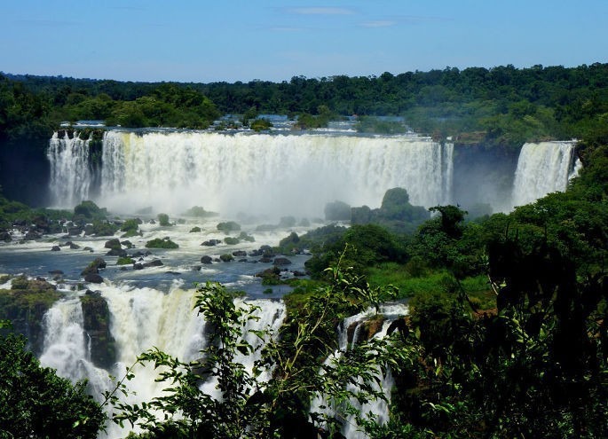 1.2 瀑布胜景:在阿根廷东北部米西奥内斯省与巴西的交界处,有一处闻名世界的自然奇景,那就是与北美洲的尼亚加拉瀑布、非洲的维多利亚瀑布齐名的伊瓜苏瀑布。