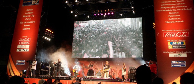 到了2010年南非世界杯的时候,Fan Fest升级了国际化玩法,不仅在南非国内的10个城市设置了球迷乐园,还在另外6个国家同步设立了分会场,柏林、伦敦、墨西哥城、里约热内卢、罗马、悉尼,真的是全球狂欢。既然是Fest,狂欢、大型聚会,自然也少不了吃喝玩乐的各种项目和设施,人们在比赛间隙可以参与的活动丰富多彩。