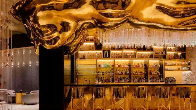 你知道迪拜帆船酒店27层的Gold On 27吗?在这个酒吧里最具标志性的鸡尾酒就是这款名为Element79的无酒精鸡尾酒。它以黄金的原子数命名,由黄金色素调色,金色砂糖调味,最后再在上面撒上一层金箔。连酒类饮品都如此奢华,那酒吧内部的装修自然也是绚烂辉煌。使用了不少真金白银的内部装饰让人从映入眼帘的那个瞬间开始,就仿佛瞬间进入了一个真实的黄金世界。