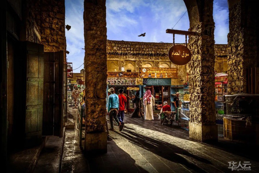 市集上商品琳琅满目,空气中弥漫着香料和Bukhoor 熏香的味道,卡塔尔当地妇女们用熟练的手法将骆驼毛或是山羊毛编织成传统贝都因地毯;另外一侧的妇女正在认真的进行着海娜传统艺术彩绘 ......熙熙攘攘的小巷毫无保留地展示了卡塔尔人民生活的原本模样。
