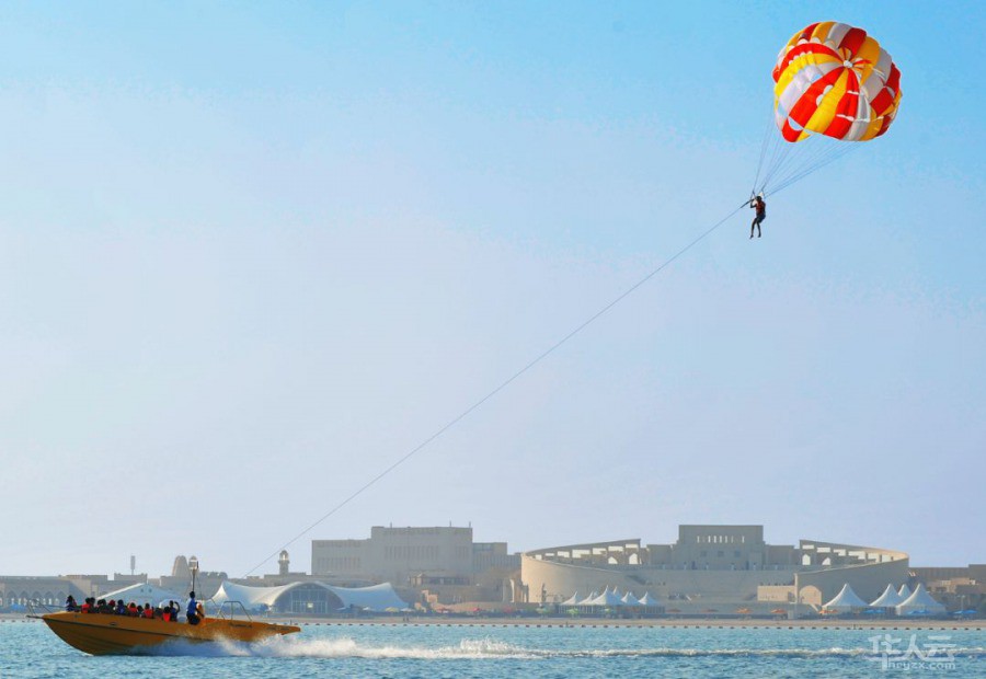 另一半海水的多哈湾,各种水上运动、 潜水和钓鱼又带你进入海滨度假模式。脚踏冲浪板,驰骋于海面;更有勇敢者的游戏——风筝冲浪,惊险刺激,在浪尖起舞,在风中翻腾......不断挑战自己的极限。