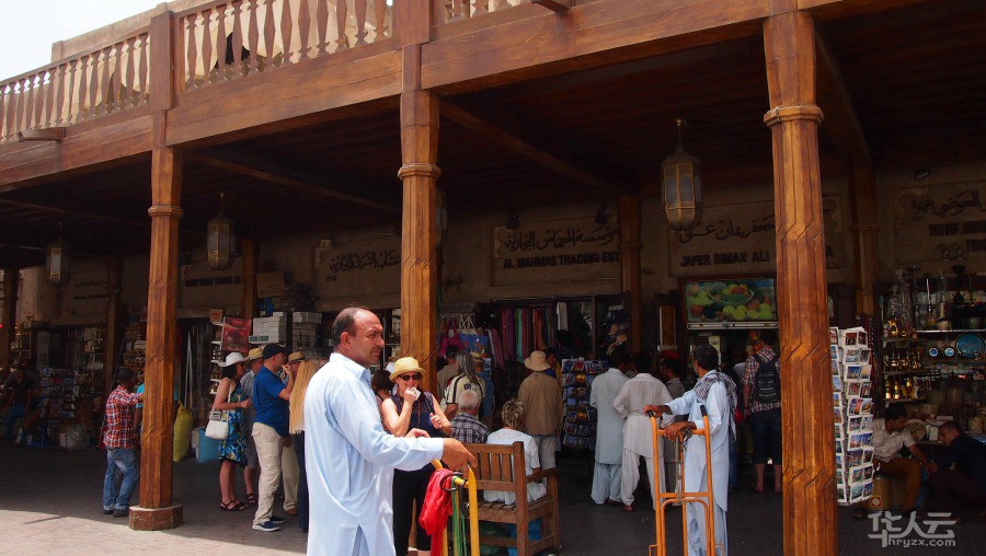 从民俗村走出便是迪拜河,在河边走过,便能看到对面高楼林立,摩登大厦,跟小小的民俗村形成鲜明的对比。迪拜河将迪拜分为Bur Dubai新城区和Deira老城区。新城区坐拥现代化的高楼大厦,而老城区则静静的守护着阿拉伯传统的集市风格。沿着河边走到码头,就可以买船票去往对面的黄金市场和香料市场了。一同乘坐船只的多半是身着白袍的当地大叔,望着两岸各色建筑,头顶火辣太阳,周围是无边的河水,感受着弄弄的阿拉伯风情。由于是当地普遍的过河方式,船费不贵,只需几分钟就可以到达对岸。