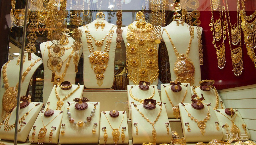 整个街道两侧各个橱窗内均摆放着设计独特的黄金饰品,金碧辉煌、各具特色,多数是从未见过的大片黄金装饰,甚至如衣服一般。这里的黄金是按重量出售的,可以议价,按不同的K数价格也有所不同。不过但看这满眼的金黄,已经够大饱眼福了。